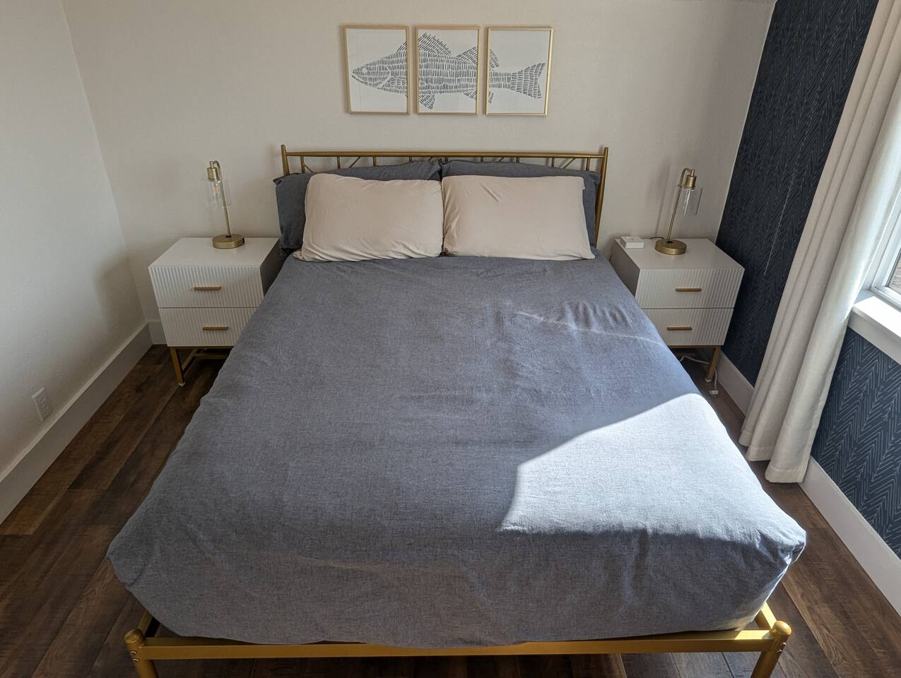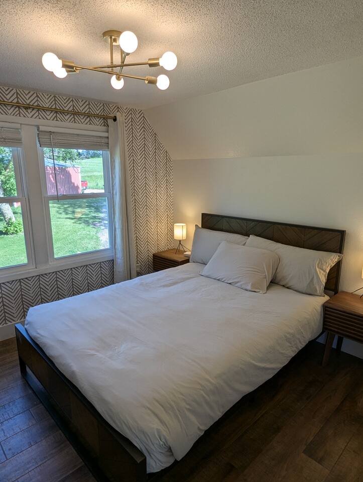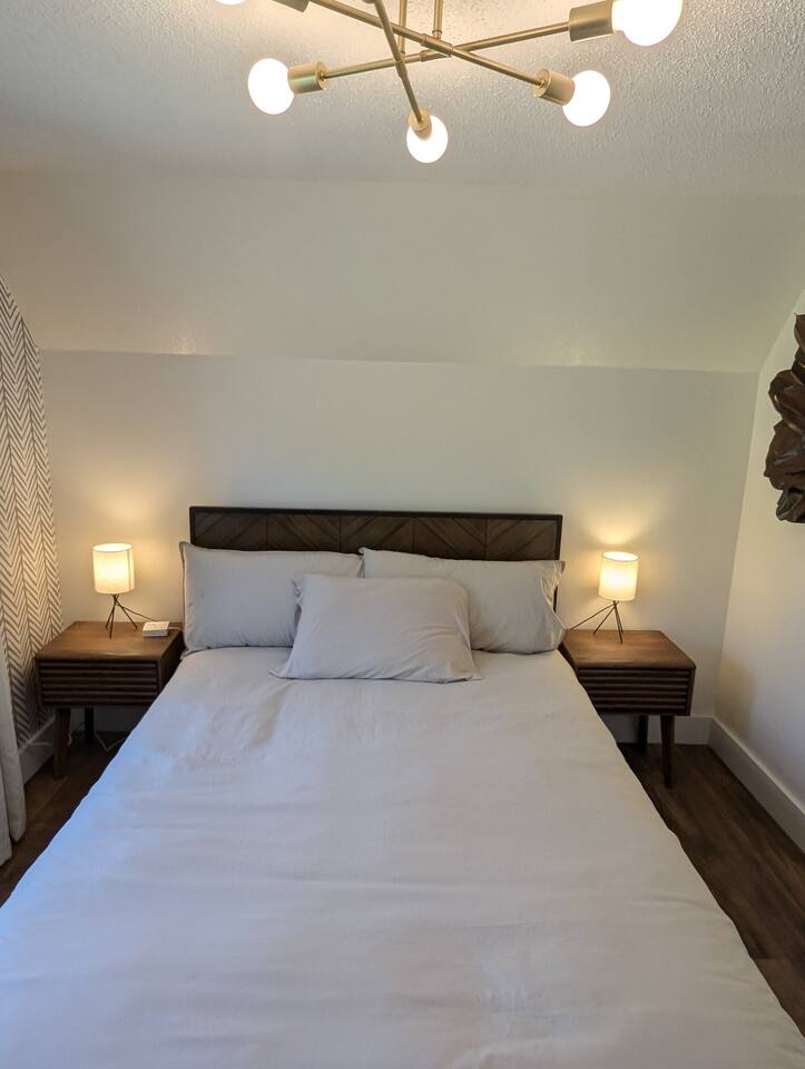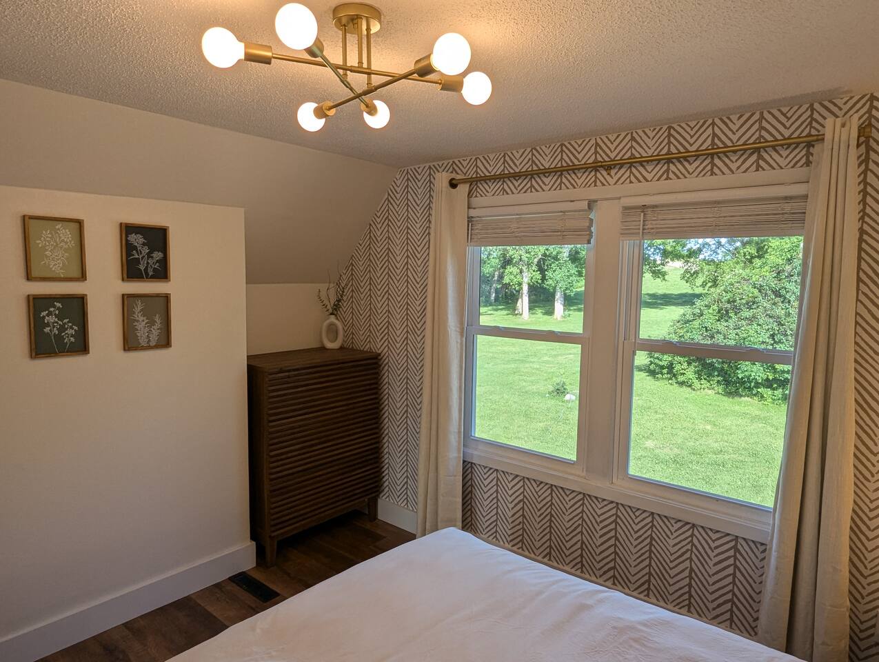 The Evergreen at West Lost Lake is part of Twin Pine Resort and was formerly the caretaker's house. The living area is an open kitchen, dining, two sitting rooms, and a large outdoor deck. This space features a view of West Lost Lake, a wood fireplace, long sectional, coffee bar, and 65" Smart TV. The kitchen is stocked with all common cooking utensils and kitchenware, including pots and pans, toaster, tea kettle, and coffee pot. The large deck has a propane grill, outdoor table with seating for 8, lounge furniture, propane fire table, and string lights over the entire deck. There are 3 bedrooms upstairs, each with a queen sized mattress and included bedding. There is an additional pull-out couch on the main floor and a Pack-n-Play available. There are two bathrooms stocked with linens, shampoo, soap, and toilet paper. The main floor bathroom is a full bathroom with a walk-in shower. The other upstairs bathroom is also a full bathroom which has a tub only. There is a utility room next to the main floor bathroom with a washer and dryer. The fire pit is located just off the deck with a great view of the lake. The property is large, partially wooded, and right on the lake so there is plenty of wildlife including birds, deer, waterfowl, turtles, and bugs.